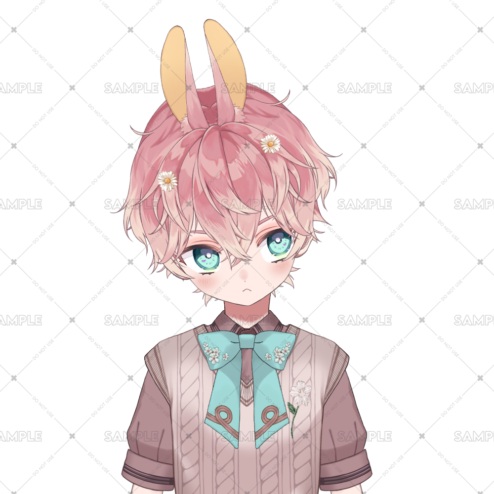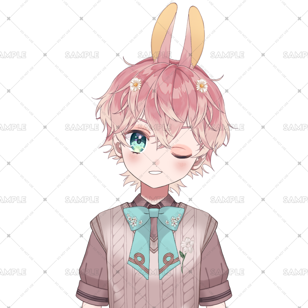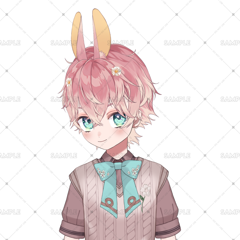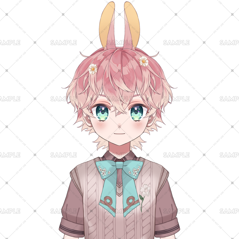ピンクのフワフワ髪に、キュルキュルとした瞳がとってもキュート!中性的な魅力を持つうさ耳の子で、首元の花柄リボンも注目ポイント🎀✨