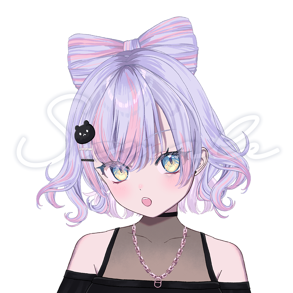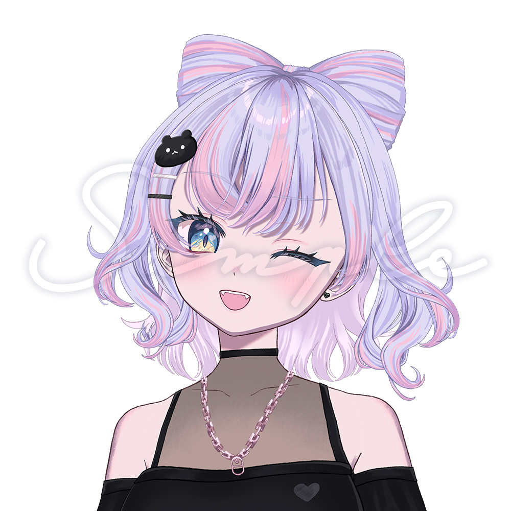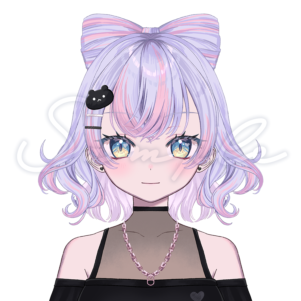 大きなリボンの髪がキュートさを引き立て、モノトーンのクマの髪飾りがシックな遊び心を演出します。Vtuber活動をスタイリッシュに彩る、個性豊かな女の子モデルで、あなたの配信を一層魅力的に!