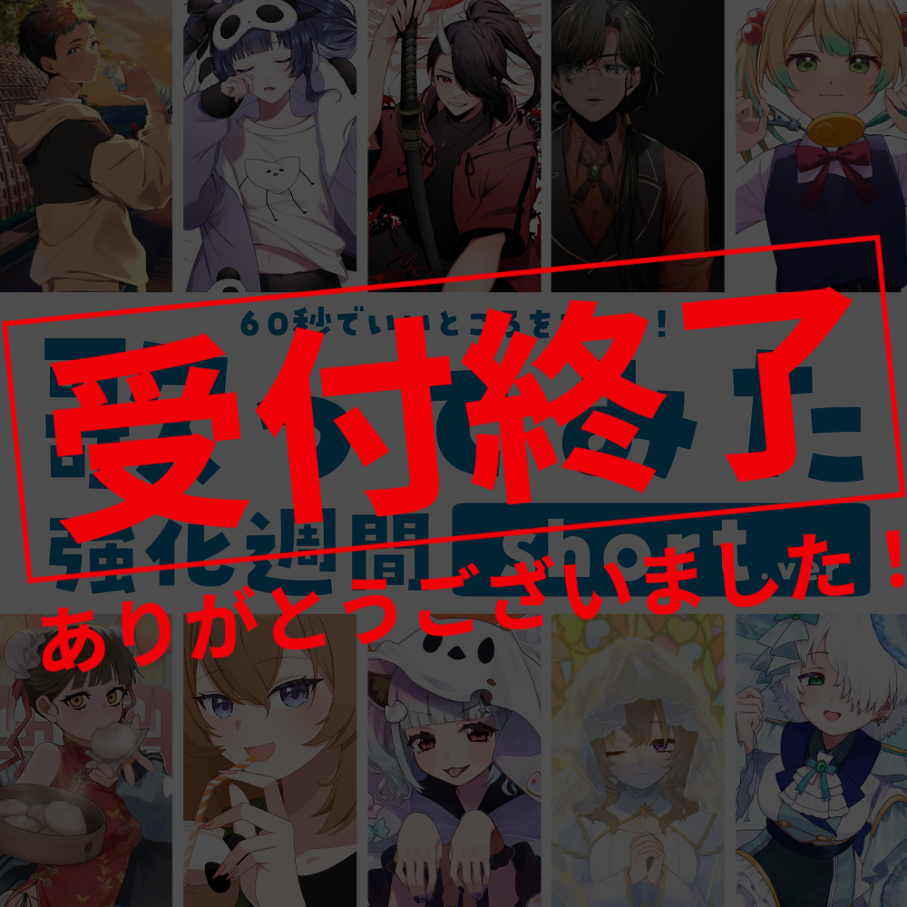 | 制作に含まれるもの | ・縦型イラスト作成(腰のあたりまで/ポーズ自由/リテイク2回まで) ・外部クリエイターによるおまかせMIX ・内部クリエイターによる動画のおまかせ文字入れ+エフェクトの追加 ・単色デザイン背景のおまかせ追加 |