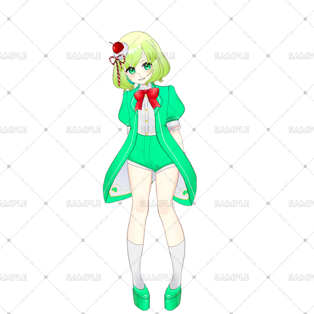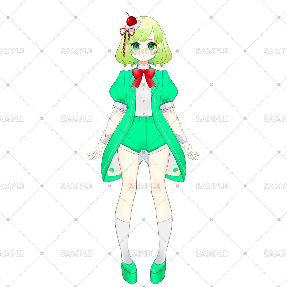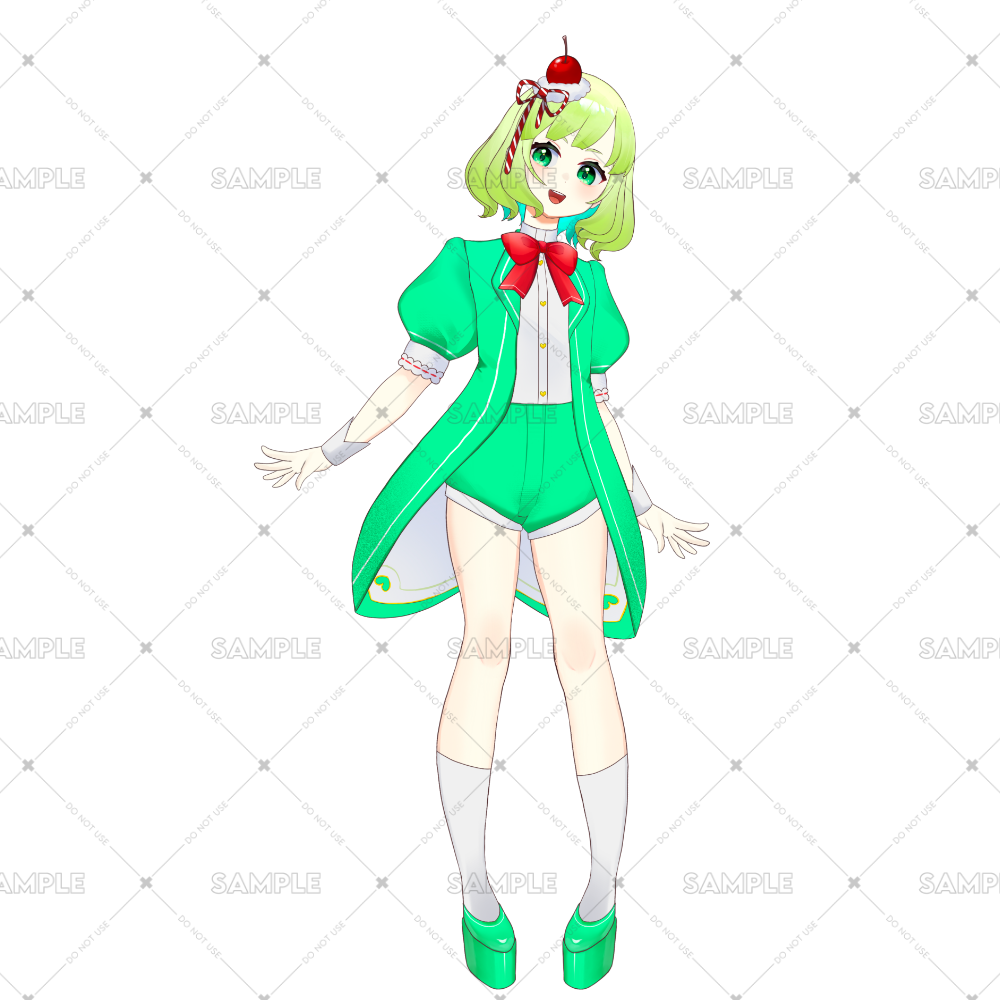 クリームソーダをモチーフにした、メロンカラーのショートボブが印象的な女の子。頭のクリームとサクランボが愛らしいアクセントに🍒💚