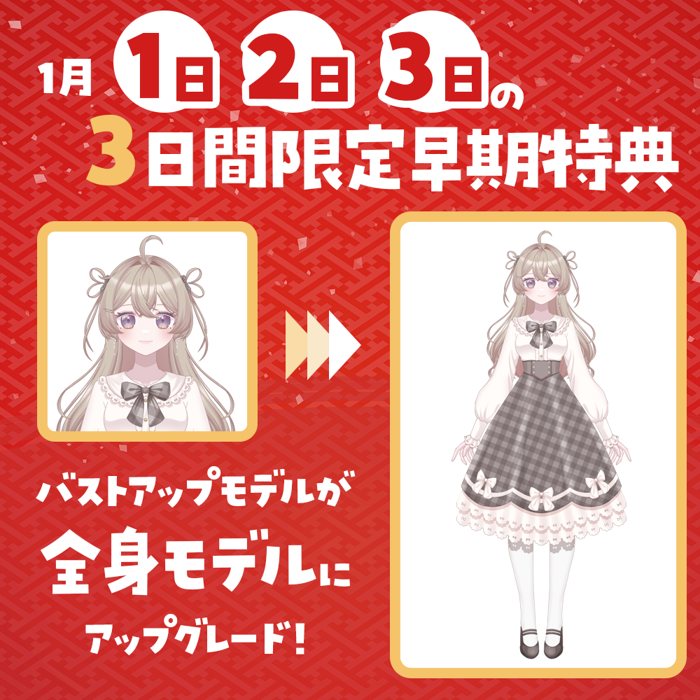 | 01/01~01/03 | バストアップモデルを全身サイズにアップデート |