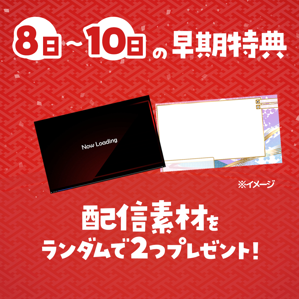 | 01/08~01/10 | ランダム配信用素材×2点プレゼント |