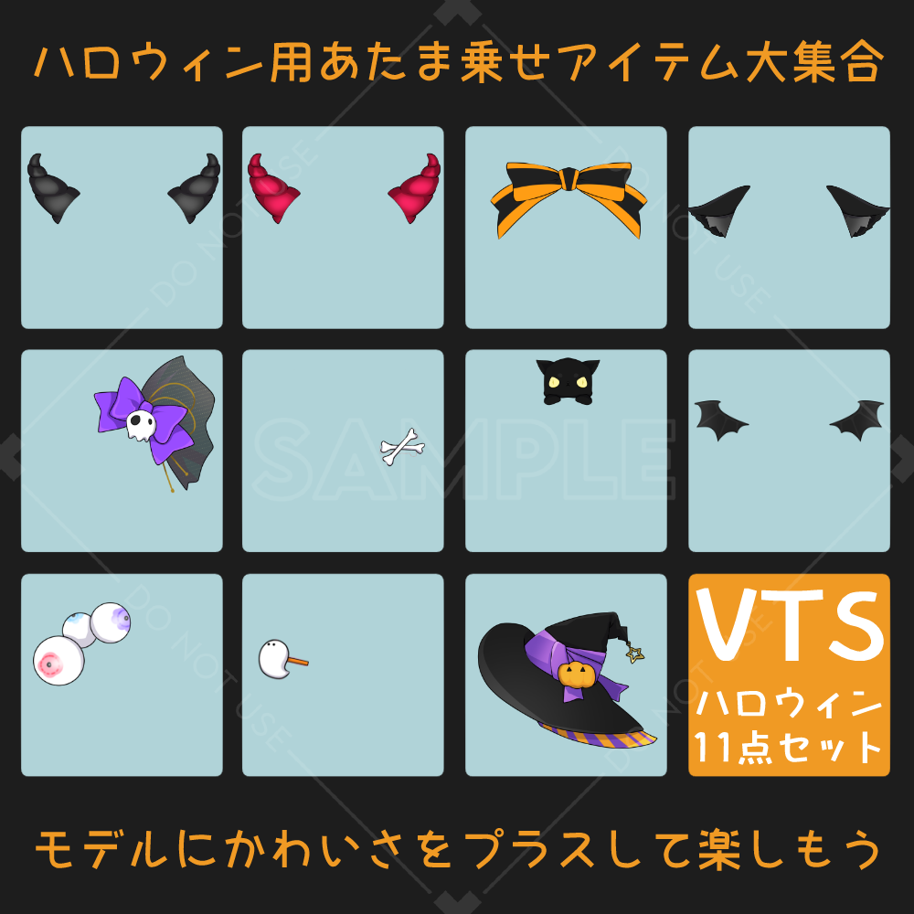 VtubeStudio用パーツ-ハロウィン頭乗せアイテム11点セット